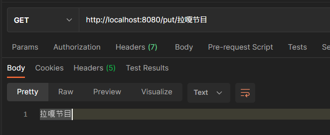 在访问 ‘’https://localhost:8080/put/拉嘎节目" 时,程序会自动将 URL 中的模板变量 {name} 绑定到通过@PathVariable 注解的同名参数上,即”程序获取路径中的值”
