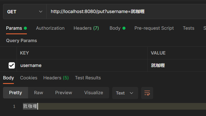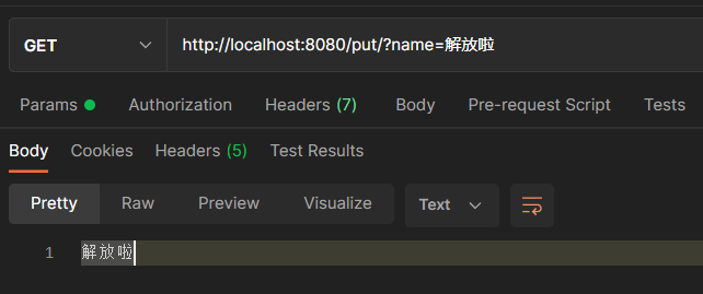 @RequestMapping(value = "/put") public String put(String name){ return name; }