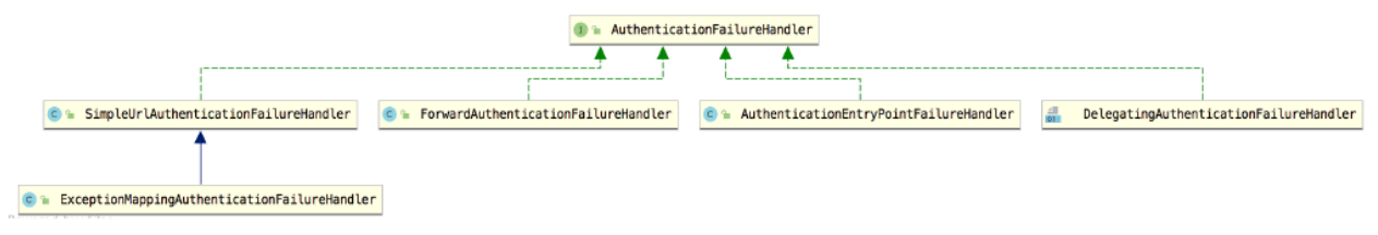 AuthenticationFailureHandler 接口中只有一个 onAuthenticationFailure 方法,用来处理登录 失败请求,request和response参数很好理解,最后的exception则表示登录失败的异常信息。 Spring Security 中为 AuthenticationFailureHandler 一共提供了五个实现类_,_如图 2-9 所示