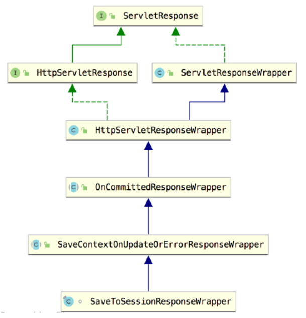 首先是 httpsSessionSecurityContextRepository中定义的对于响应的封装类 SaveToSessionResponseWrapper,我们先来看一下 SaveToSessionResponseWrapper的继承关系图,如图 2-20 所示。