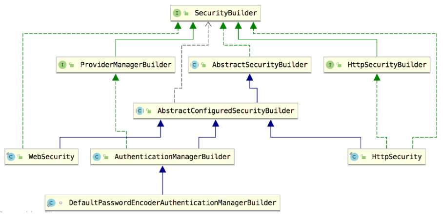 至此,关于SecurityBuilder体系中的几个关键类就介绍完了 ,至于httpsSecurity和 WebSecurity是怎么配置到一起的,我们将在后面的章节中进行分析。