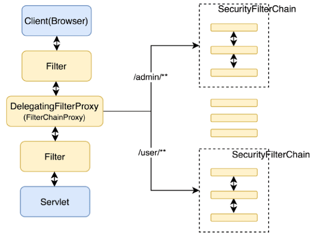 public interface SecurityFilterChain { boolean matches (httpsServletRequest request) ; List<Filter> getFilters () ; }