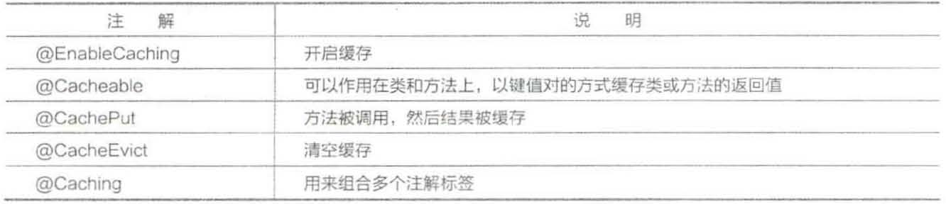 1.1 声明式缓存注解 Spring Boot提供的声明式缓存(cache)注解,见表11-1。