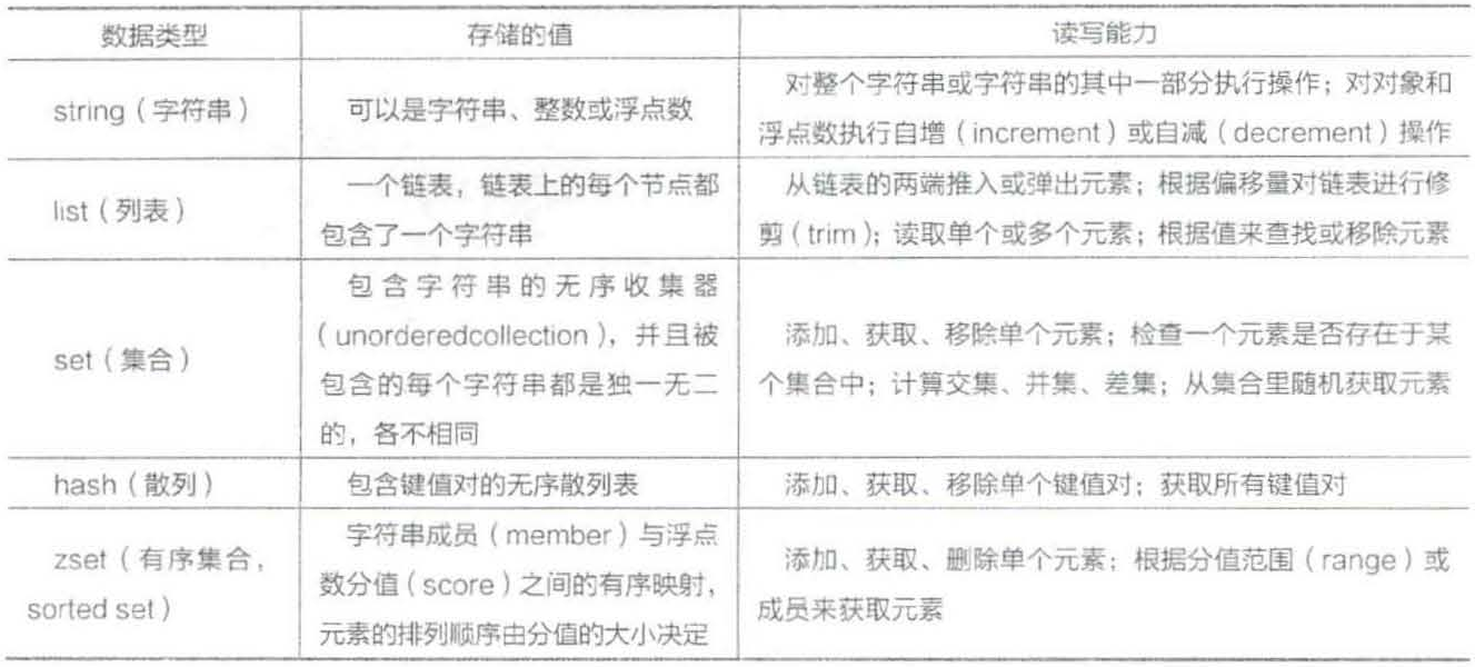 3. Redis的数据类型 Redis有5种数据类型,见表11-2。