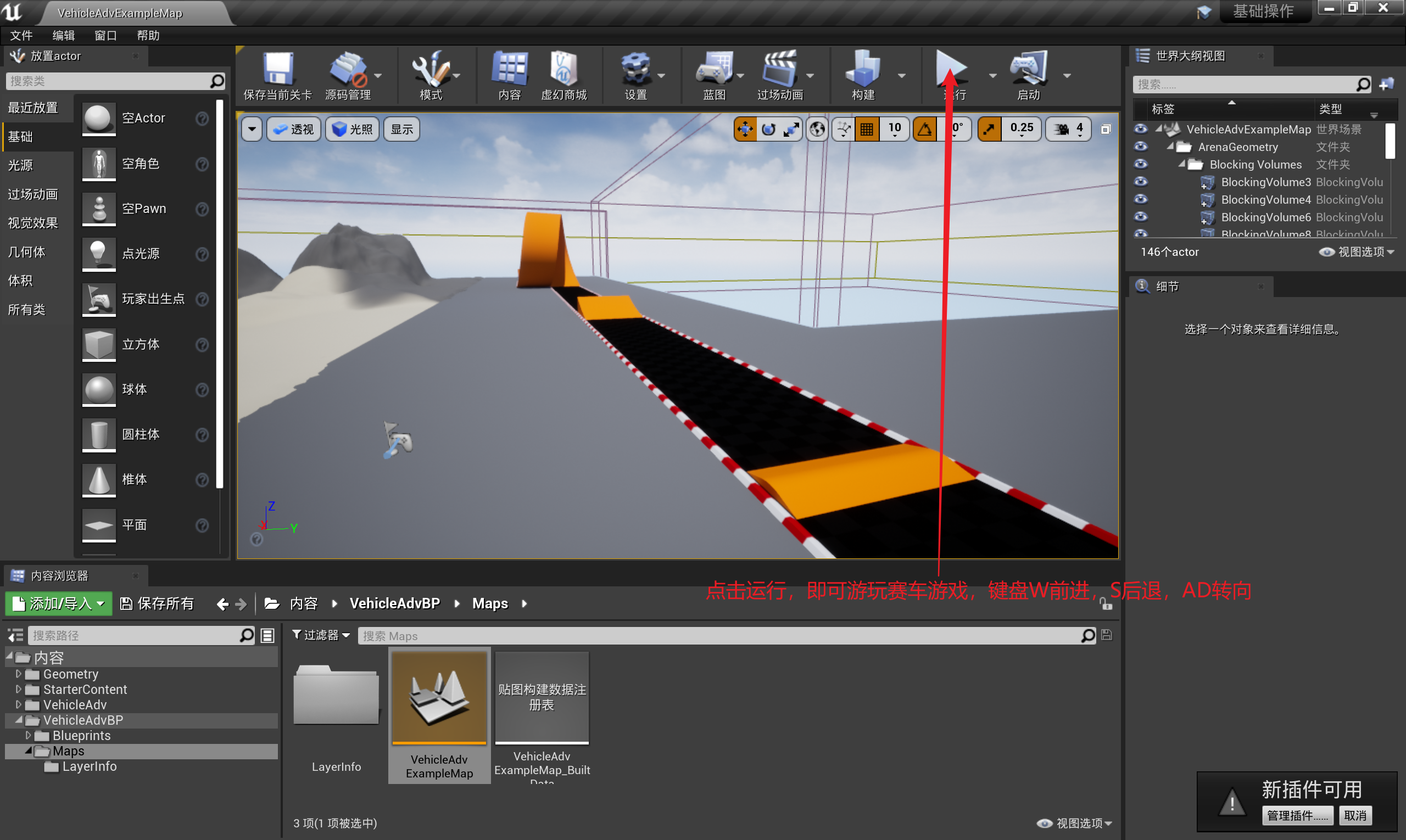 6.此时场景已加载出来,点击运行,然后鼠标点击场景即可开始游玩